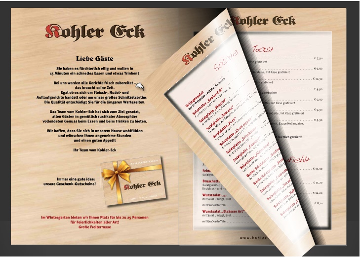 Speisenkarte als Blätterbuch, nach Kundenvorlage excl. Gestaltung